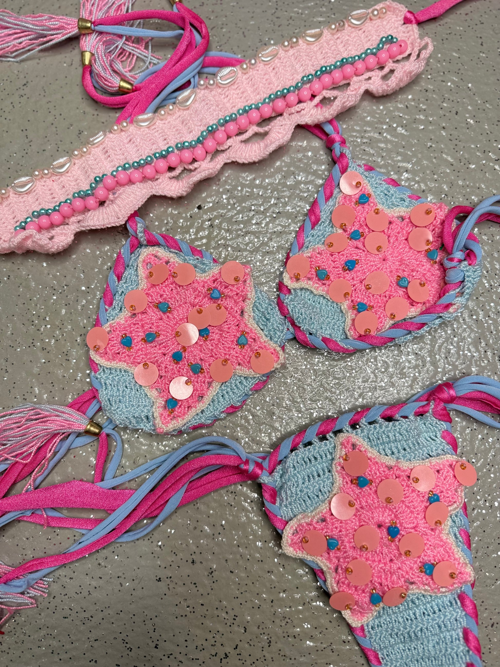 Handmade crochet bikini and necklace set